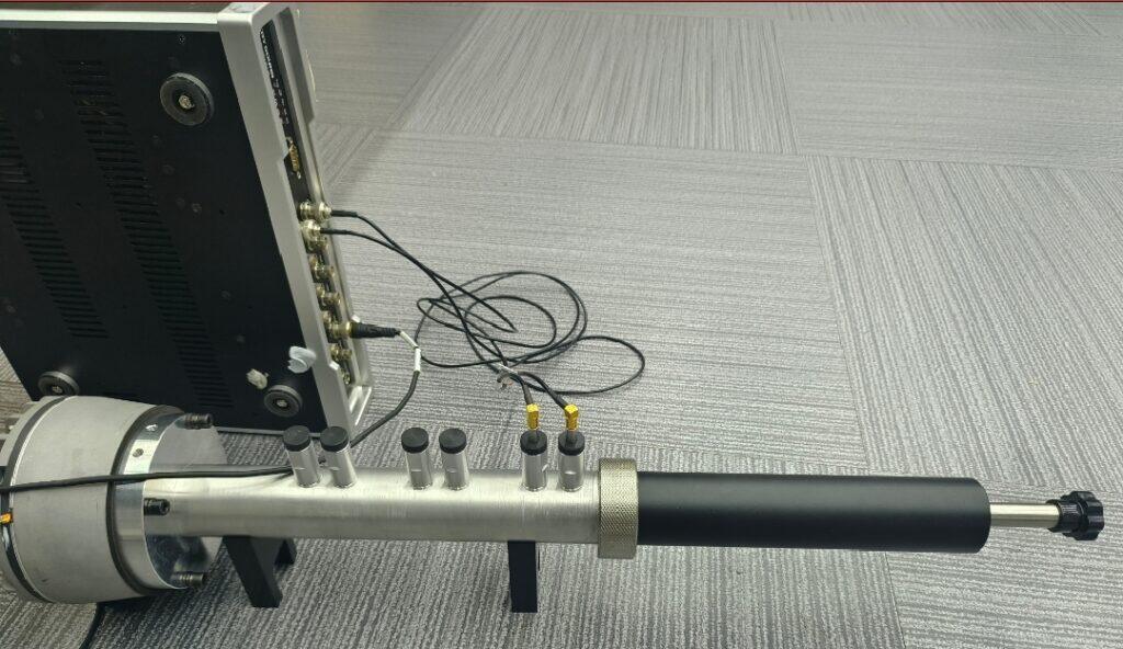 在硬件配置上,我们采用了专为声阻抗测试优化的测量链路:前端使用两根 1/4 英寸压力场测量传声器 CRY342,在保证频率范围宽、动态范围宽的同时,能够在高声压级条件下保持良好的线性和稳定性,非常适合阻抗管内大声压场环境下的精确测量;后端搭配 CRY6151B 采集卡 进行信号采集与输出控制,其底噪低、输出稳定、接口和操作逻辑简洁。
