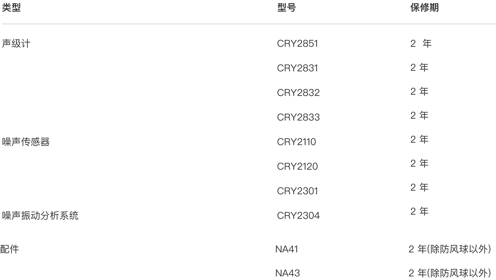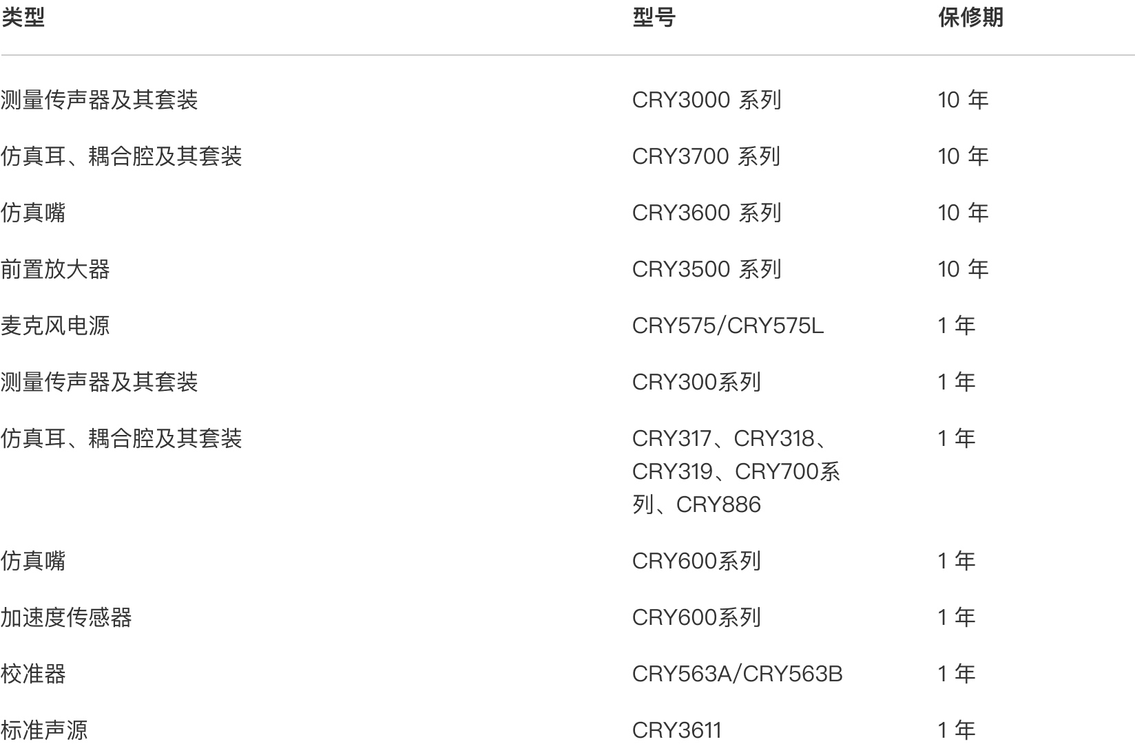 10年保修自发货之日起生效,适用于CRY3000系列传感器产品线、麦克风电源,具体保修范围不包括以下排除项。